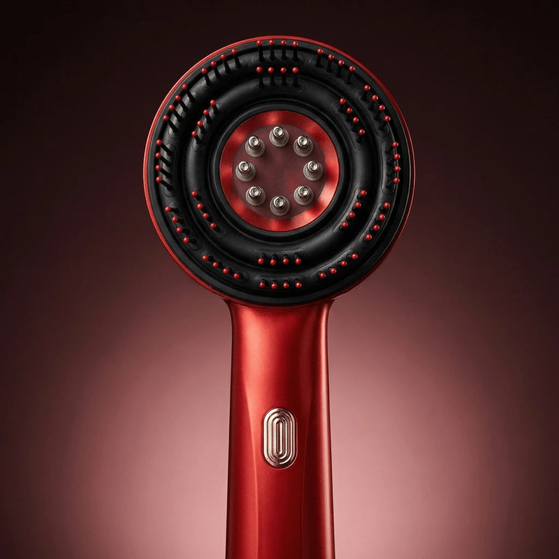 By combining red light technology with gentle scalp massage, the device helps stimulate the scalp and support healthy circulation.